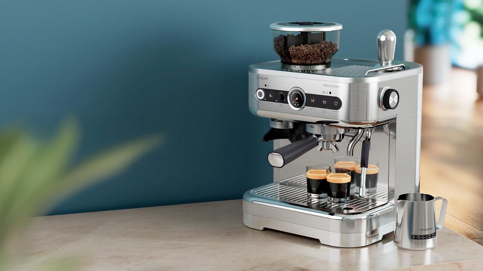 Indulge in the rich aroma of freshly prepared espresso. Discover the satisfaction of crafting it yourself with the Philips Barista Brew semi-automatic espresso machine — designed to empower real coffee lovers to elevate their skills with every cup.