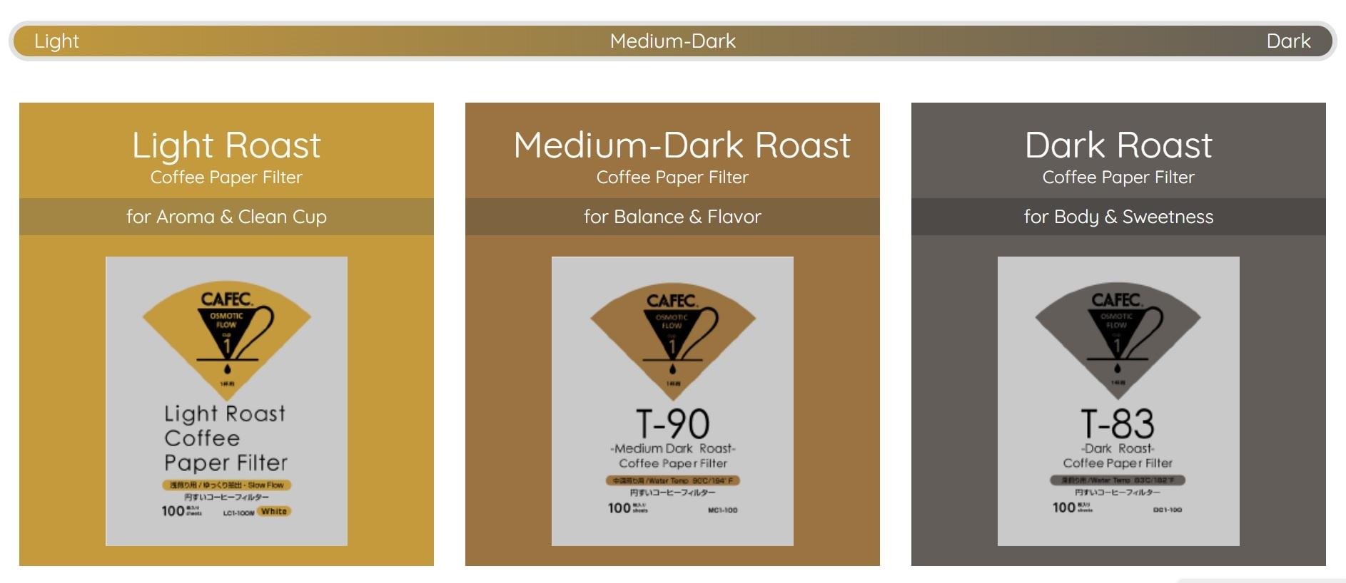 Designed by CAFEC Japan, the coffee paper filter expert, the world’s first coffee paper filters by roast types are created in different thickness and density, variating the brewing speed and thus the features of coffee.
