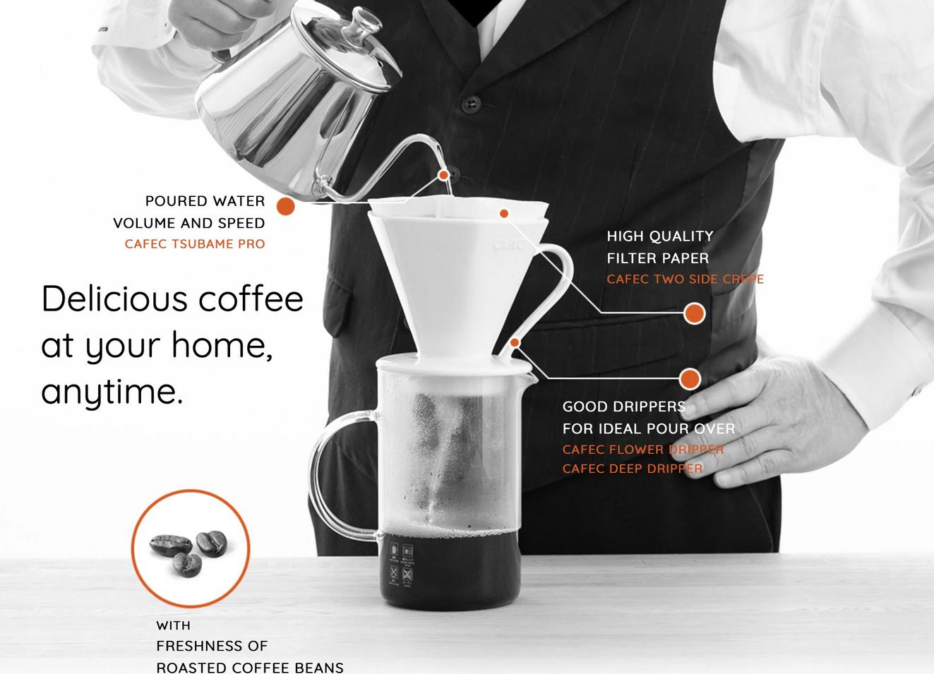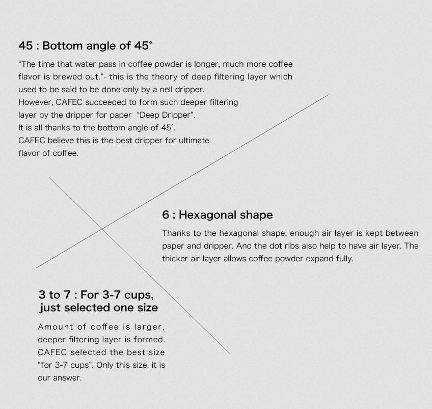 Deep45 paper filter is the special filter paper for Deep Dripper. The bottom angle is 45°to fit in that of the Deep Dripper, is narrower than that of a normal cone-shaped filter paper. This is the filter paper made only by CAFEC as the pioneer of filter paper manufacturer.