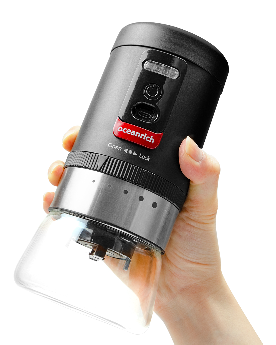 • 可USB 充電,方便攜帶 • 可配合 Oceanrich S2 全自動模擬手沖咖啡機使用 • 咖啡豆容量:20克 • USB 充電: 3小時充電可研磨15g 咖啡豆 達 20次 • 研磨時間(15g): 1-2分鐘 • 5種咖啡豆研磨度(摩卡壺,滴濾,法壓壺,虹吸壺 • 陶瓷圓錐形磨盤 • 玻璃瓶及上蓋可組合成隨行咖啡豆儲存盒