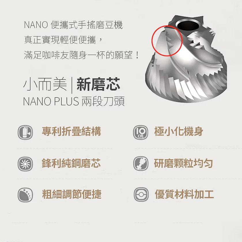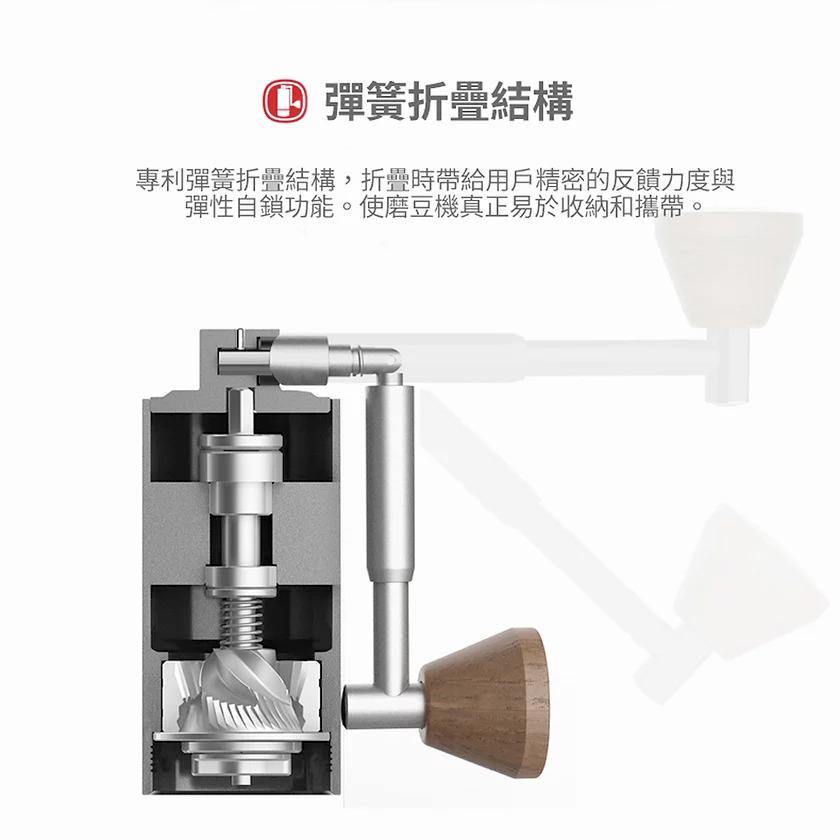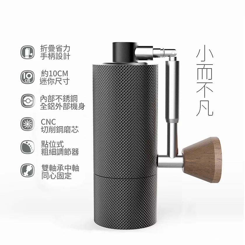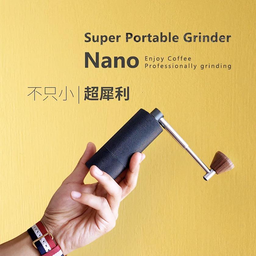 TIMEMORE栗子Nano便攜式手磨器是那些尋求不影響研磨質量的小型手磨器的完美解決方案。 手磨器專為滿足旅行咖啡愛好者的期望而設計。機身只有10cm高,並由一塊鋁製成,胡桃木手柄旋鈕,優雅耐用。防滑立體鑽石紋,握感舒適,研磨更輕鬆。 手磨器的獨特之處在於手柄採用彈簧摺疊結構,可以像彈簧刀一樣輕鬆摺起來,方便收納,便於攜帶。 手磨器的另一個優點是由CNC不銹鋼製成的錐形刀盤,結合雙軸承固定中軸,研磨更穩定勻均。 磨豆容量為15克。